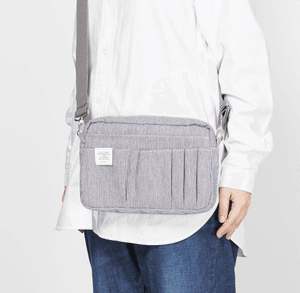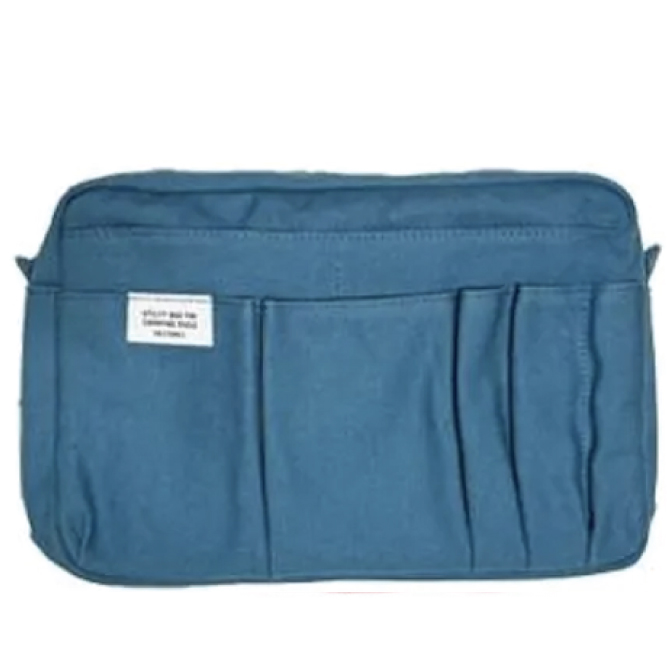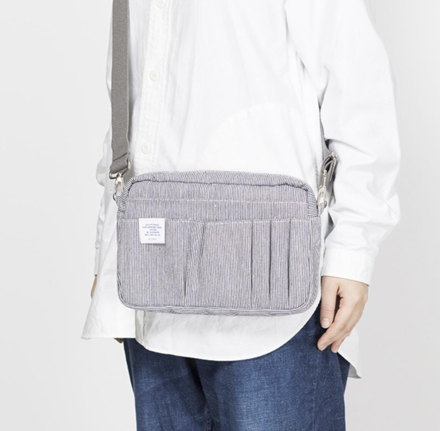 Delfonics Utility Pouch in the M size (A5 size), is great for organizing your essentials.  It has total of 15 pockets of different sizes in front, back and inside of the pouch.  Inside, the zipped utility pouch contains four stitched inner pockets and a main area. On the outside there are ten pockets of varying size to carry and store any important valuables, smartphone, pen, small notebook or loose bits and pieces. There are two loops on each side for adding your own shoulder straps.
