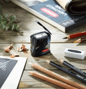It is ergonomically created to be comfortable when held with a modern, tinted reservoir meaning there's no mess, as the shavings are caught in the container. A neat touch is the flip top cap, which makes this the perfect sharpener for when you're out and about and don't want to end up with a bag full of pencil shavings.