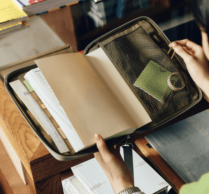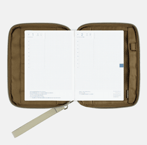 With its padded construction, the cover has a gentle, cushioned feel. It is roomy enough to hold your Hobonichi Techo along with a thicker notebook, making it easy to carry everything together. The long strap loops comfortably around your wrist, allowing you to use it just like a pouch when you’re on the go.