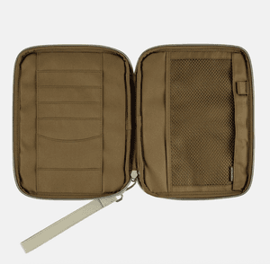 Made from polyester, the quilted fabric has a soft, tactile texture you’ll love to touch. The zipper is designed with hidden rails, giving it a polished and clean finish down to the smallest detail. The zipper pull strap is detachable, and the slider includes a ring so you can replace it with your favorite strap if desired. The interior is a deep olive green, featuring a mesh pocket for small items and a pen hook designed to hold a pen securely by its clip. Even when closed, the cover maintains a sleek, tidy profile.