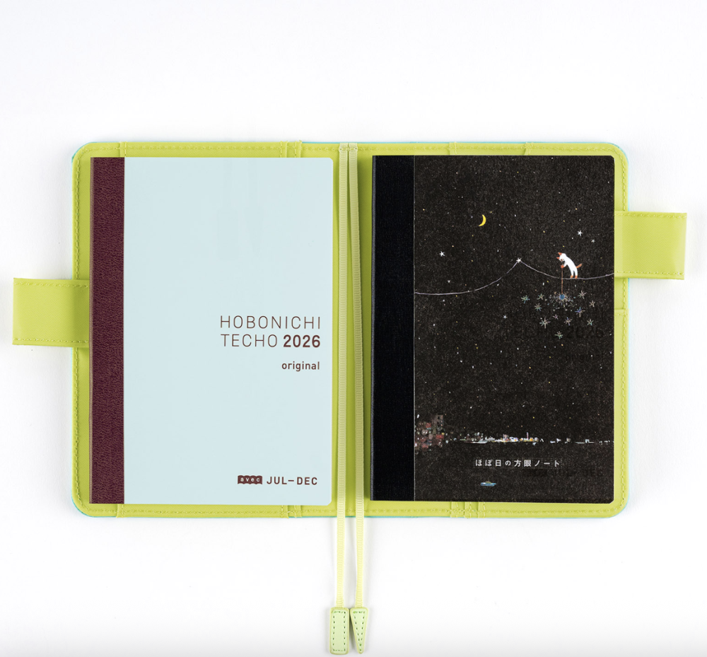 The Hobonichi Graph Notebook was made in response to requests for a standard notebook that feels just like the Hobonichi Techo. This cover was created in collaboration with illustrator Hiroko Kubota’s work. Another night of falling star sparklers was a popular design for the 2024 edition Hobonichi Techo Weeks.