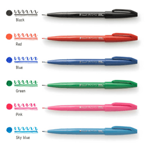 Create expressive drawings and write beautiful characters with these felt tip Pentel Touch Sign Pens. Each pen features a durable brush tip that offers good control while drawing varying line widths. The water-based dye ink flows smoothly and is available in a wide range of bright colors.
