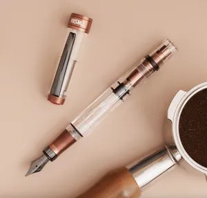 TWSBI Diamond 580 - Twsbi Diamond 580 AL R fountain pen with a warm and refined style, featuring copper-colored details inspired by affogato coffee. Transparent body, ribbed grip section, black nib, and piston filling system.