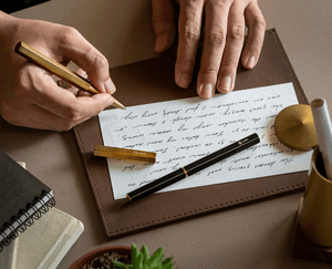 The brass will oxidize after some time. One may choose to keep it that way and cherish the user’s tracks as a sign of its intensive usage or re-polish the pen with copper/brass oil until it regains its original shine.